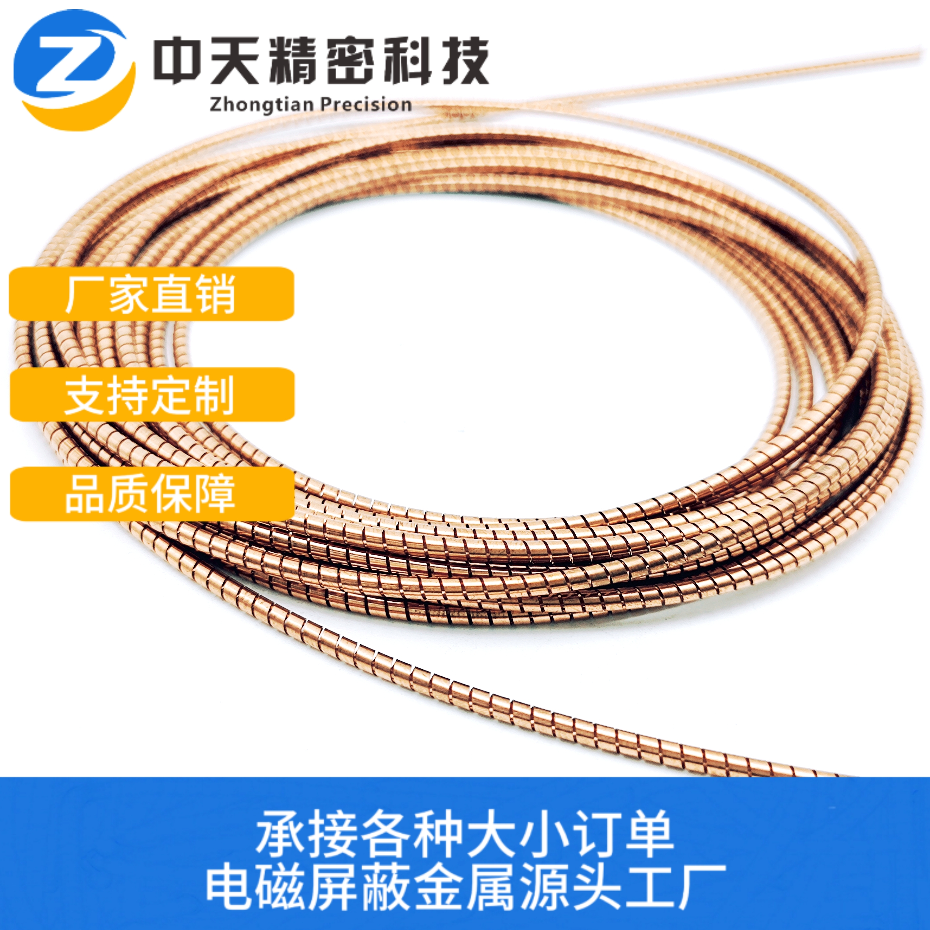 铍铜螺旋管屏蔽衬垫作为我们一系列独具特色的高屏蔽 EMI 垫片解决方案的基石,发挥着关键作用。其螺旋结构通过弹簧回火的铍铜精心缠绕而成,这使得衬垫具备极为出色的弹簧记忆功能,能在受力变形后迅速恢复原状,同时拥有强大的抗压缩变形能力,可承受严苛的使用条件。