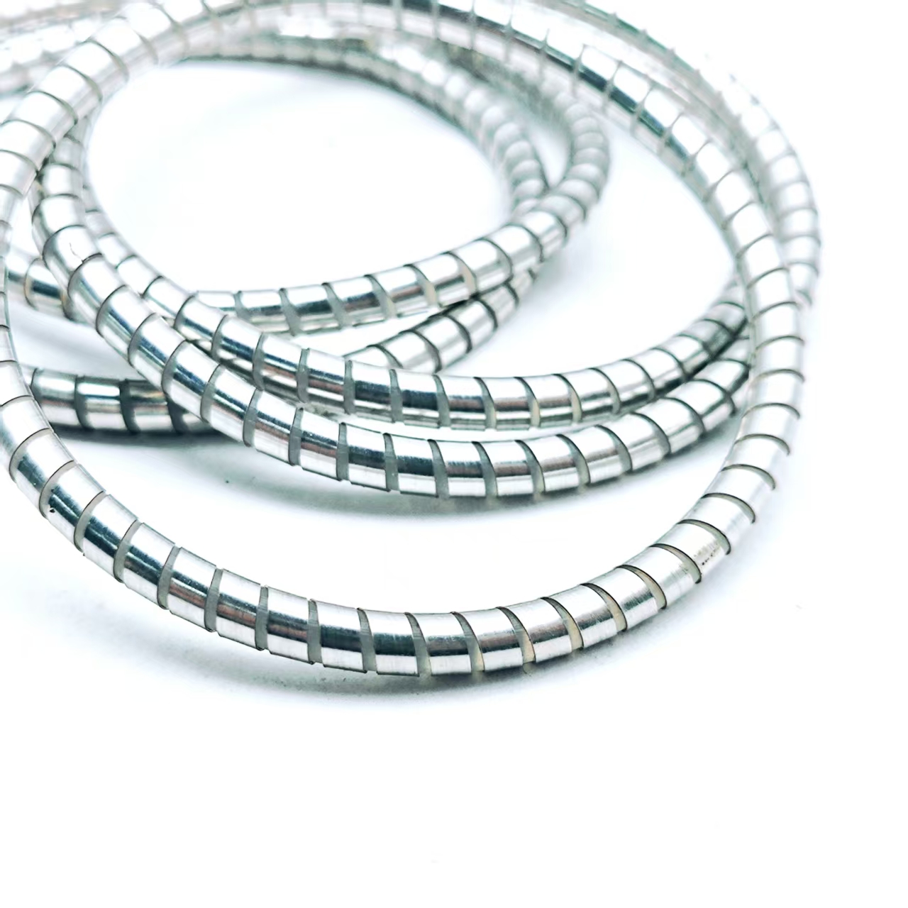 半导体制造环境中的温度波动、机械振动与化学腐蚀对屏蔽组件提出严峻考验。优质螺旋管通过三项关键设计保障可靠性:边缘涂覆工艺使其在盐雾环境中耐腐蚀寿命超 5000 小时;内置 PVC 内芯的中等弹力型号可承受 10 万次以上压缩循环无永久形变;与硅橡胶结合的复合结构还能实现 IP67 级环境密封,兼顾电磁屏蔽与防尘防水需求。